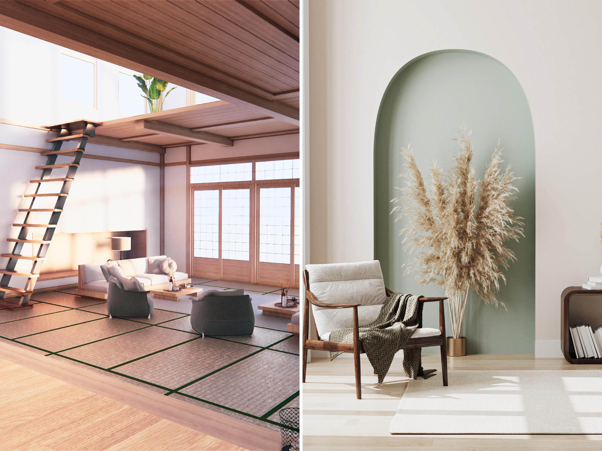 以家具佈置來看,韓系多以線條、造型、藝術來提升整體的豐富度與層次感,讓簡約的設計和色彩能更有立體度和生活感。而日系空間則貫徹始終的以自然元素來妝點空間,並重視生活機能,讓空間與大自然融合的同時也不影響生活。
